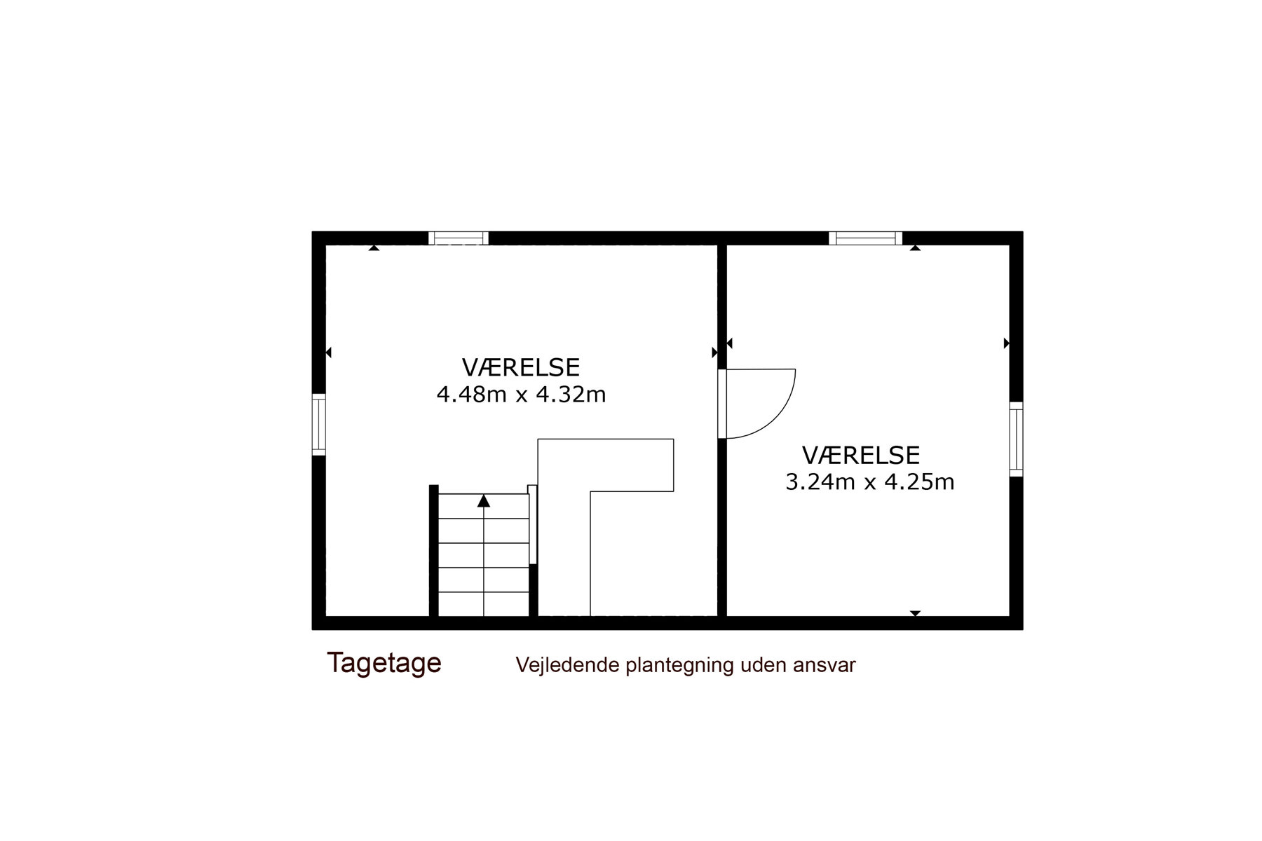 - Tagetage: Trappen i entréen fører op til førstesalen, hvor du finder boligens to gode værelser.