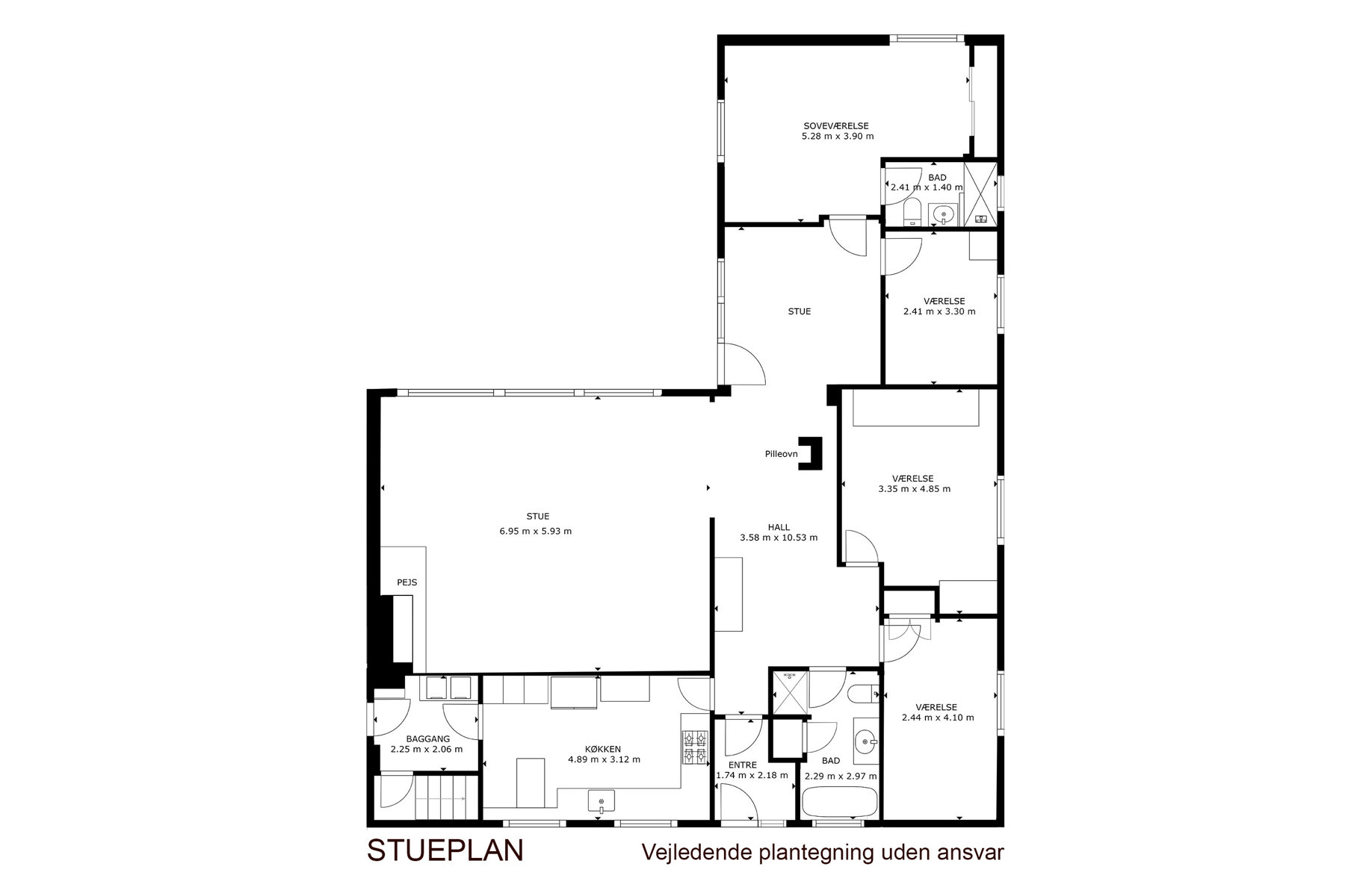 Ejendommen fremstår som en utrolig rummelig bolig med en gennemtænkt planløsning, der harmonerer perfekt med den moderne børnefamilies behov for både samvær og privatliv.