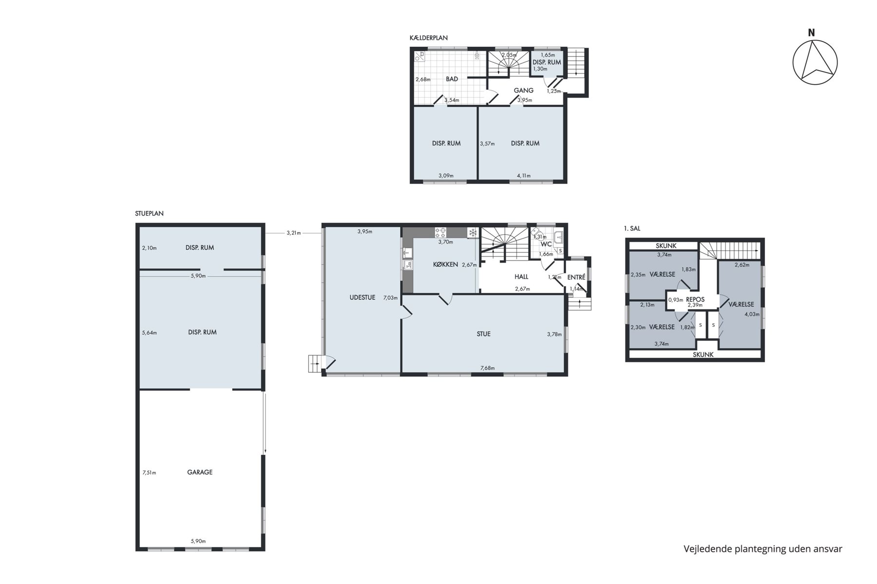 Denne velholdte villa, der strækker sig over 3 plan, præsenterer en komfortabel og funktionel indretning. Ved ankomst mødes du af et lyst køkken med en rummelig spiseplads, perfekt til familiemåltider og hyggelige sammenkomster. Den tilstødende opholdsstue byder på rigelig plads til både et spisebord og en komfortabel sofa, og herfra kan du træde ud i en dejlig udestue, der forlænger sæsonen for udendørsafslapning.På stueplanet finder du også et praktisk gæstetoilet til brug for familie og besøgende. Ovenpå byder villaen på 3 velindrettede værelser, der giver plads til privatliv og ro. Et fyrrum med bruseniche tilføjer yderligere komfort og praktisk anvendelighed til boligen.Endelig byder villaen på to store disponible rum, der giver mulighed for opbevaring eller skabelse af ekstra plads til hobbyer eller andre aktiviteter. Samlet set tilbyder denne villa en bekvem og indbydende boligoplevelse, der passer til både familielivet og individuelle behov.