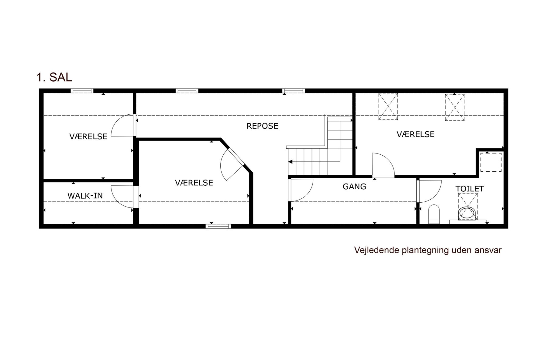 ✔ Fem værelser – fleksibel indretning tilpasset dine behov