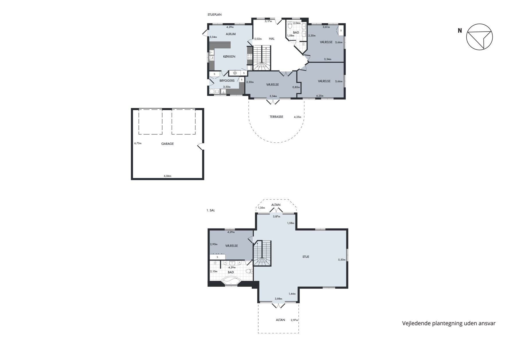 Dette hus har masser at byde på med sine 4 rummelige værelser, der giver hver enkelt beboer mulighed for privatliv og komfort. Den imponerende opholdsstue indbyder til afslapning og samvær, mens det store køkken-alrum skaber den perfekte ramme for kulinariske oplevelser og familiemiddage. De to stilfulde badeværelser med brusenicher er en æstetisk fornøjelse og giver dig mulighed for at forkæle dig selv med en opfriskende start på dagen eller afslappende øjeblikke af selvforkælelse. Det praktiske bryggers er en bonus, der forenkler din daglige rutine. Centralt i huset finder du en stor fornem hall, der fungerer som hjertet af hjemmet. Denne imponerende plads byder dig velkommen og forbinder elegant de forskellige rum i huset, hvilket skaber en følelse af sammenhæng og raffinement.