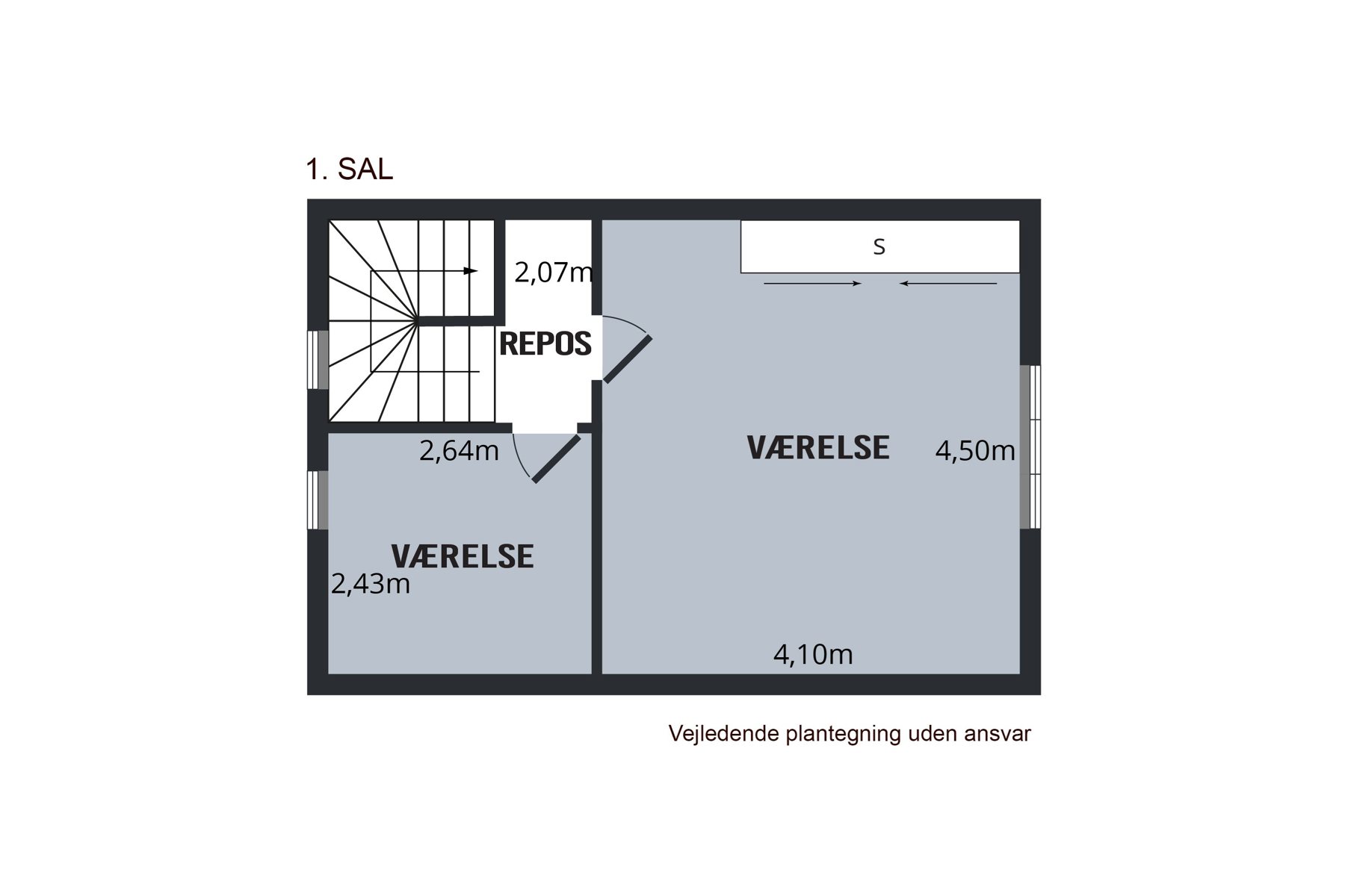 På førstesalen finder I to dejlige værelser – det ene oplagt som soveværelse og det andet ideelt som børneværelse, kontor eller gæsteværelse. Begge rum har loft til kip, synlige hanebånd og smukke lyse trægulve, der skaber en varm og indbydende atmosfære.