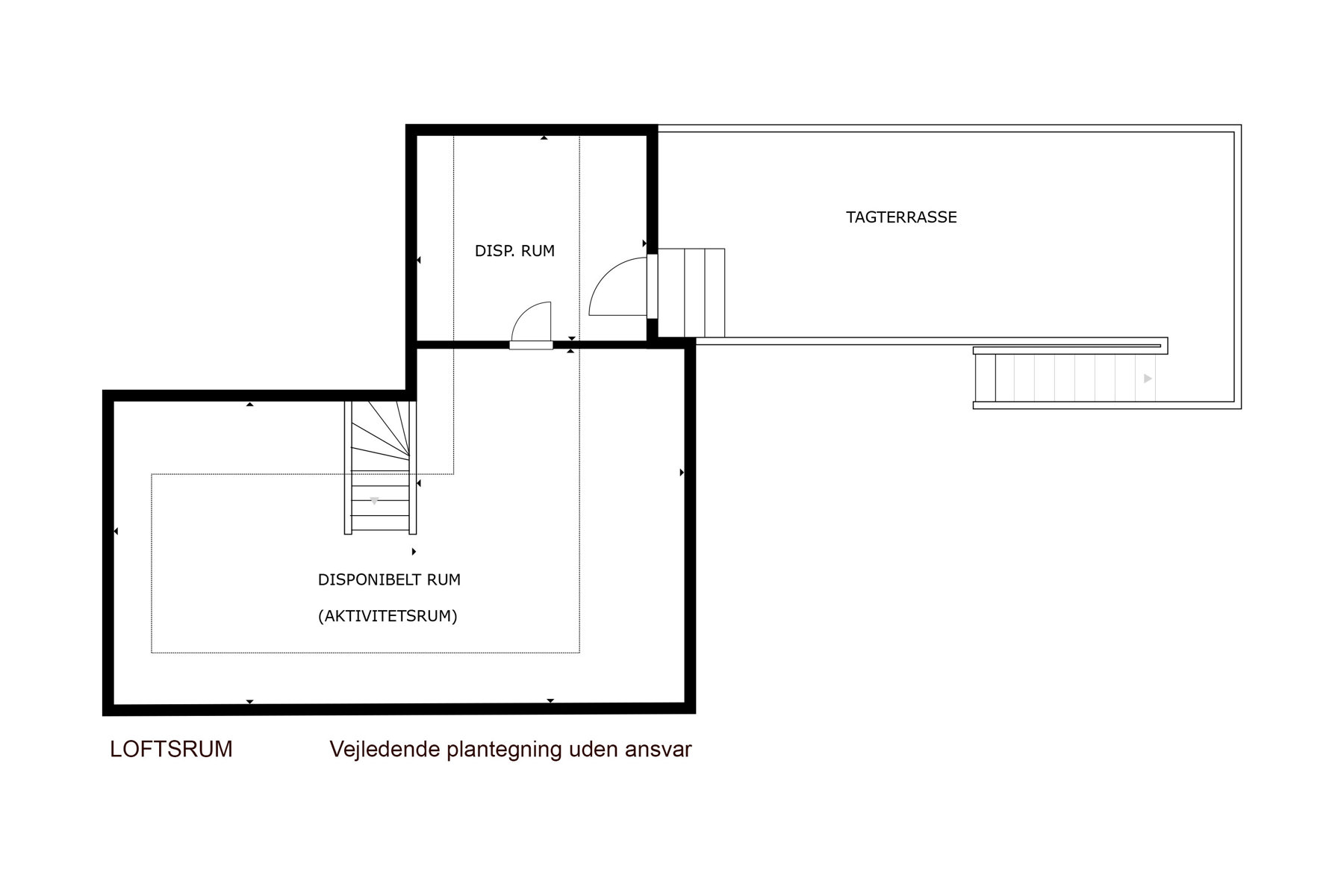 Loftsrummet er indrettet med to disponible rum, perfekte som kontor, hobbyafdeling eller opbevaring. Herfra træder man ud på den 32 m² store tagterrasse: et privat opholdsrum i første parket til solen, hvor en separat trappe leder direkte ned i den lukkede, grønne have.