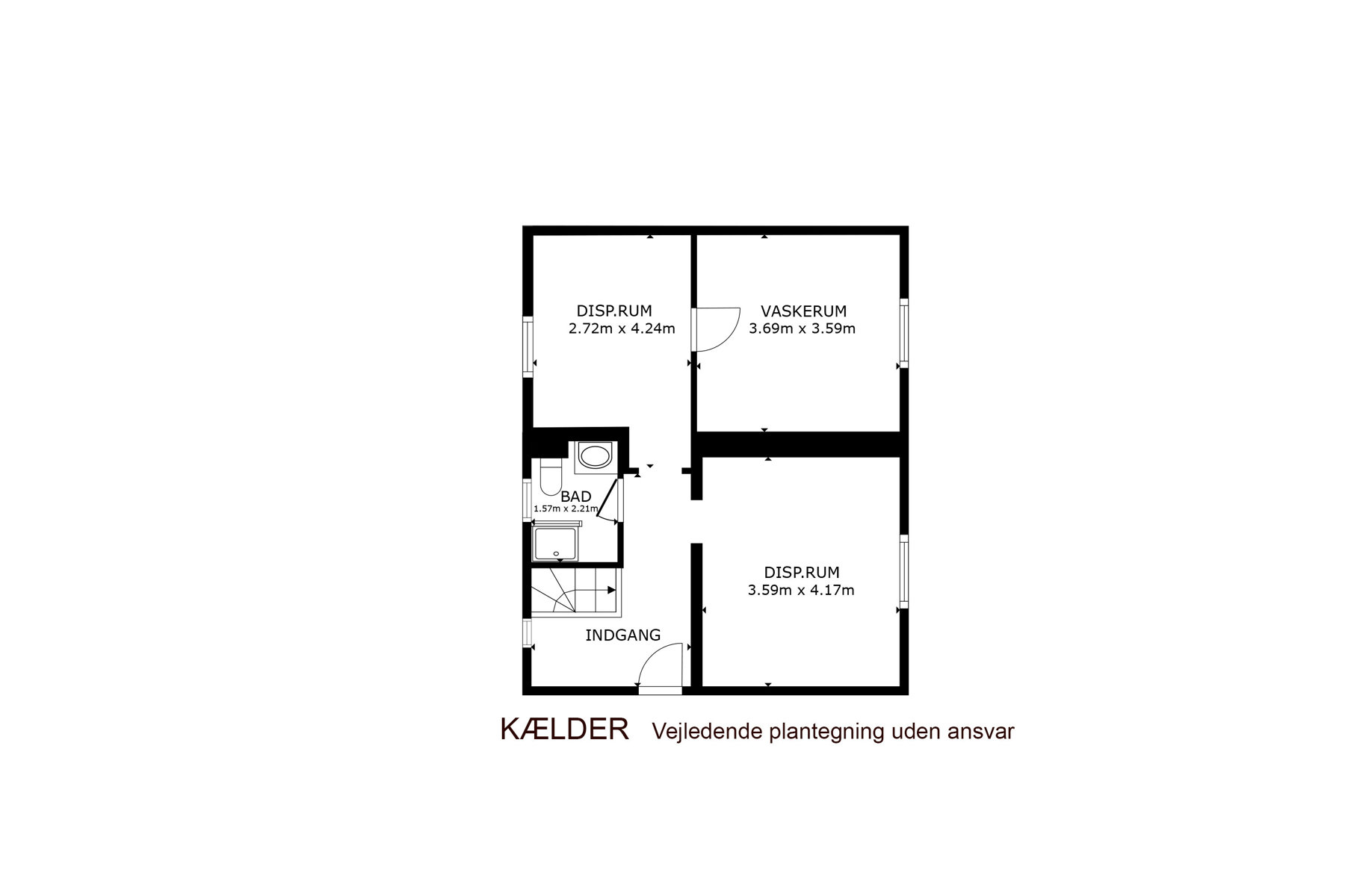 - Kælder: Som en rigtig god ekstra bonus får I en 64 m² stor, yderst brugbar kælder. Den er praktisk indrettet med egen indgang, et dedikeret og rummeligt vaskerum samt boligens andet badeværelse, der ligesom i stueplan byder på bruseniche – her flot afskærmet med rustikke glasbyggesten. Dertil kommer to gode disponible rum med et hav af anvendelsesmuligheder til f.eks. opbevaring eller hobby.